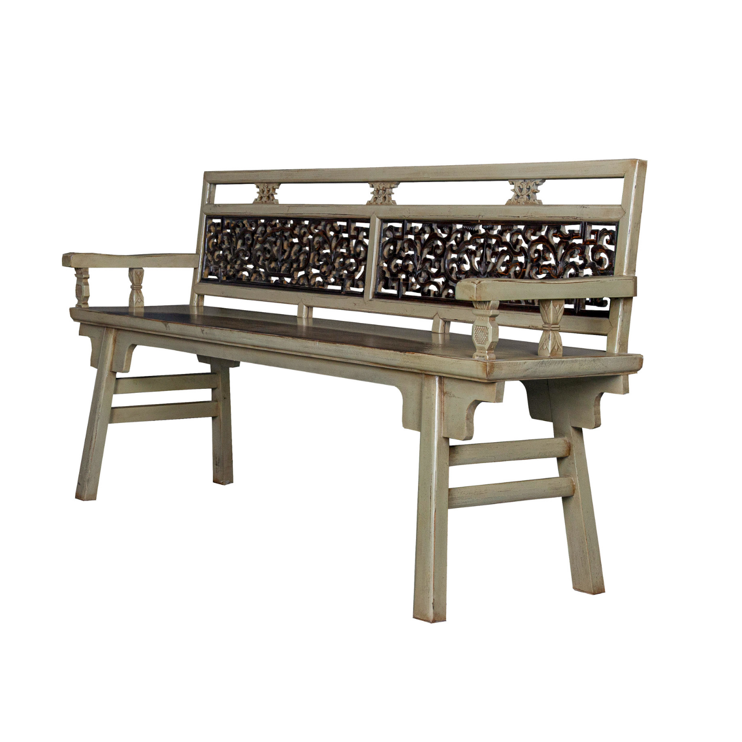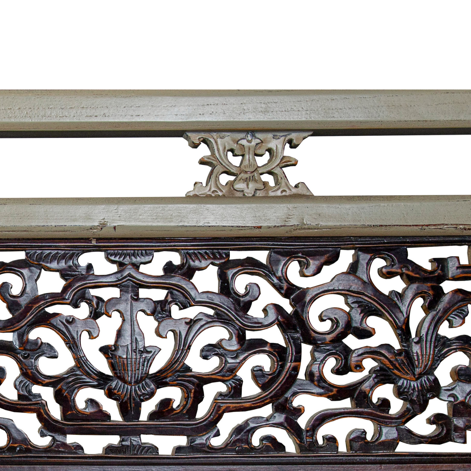 BENCH WITH CARVING RUSTIC WHITE X-43