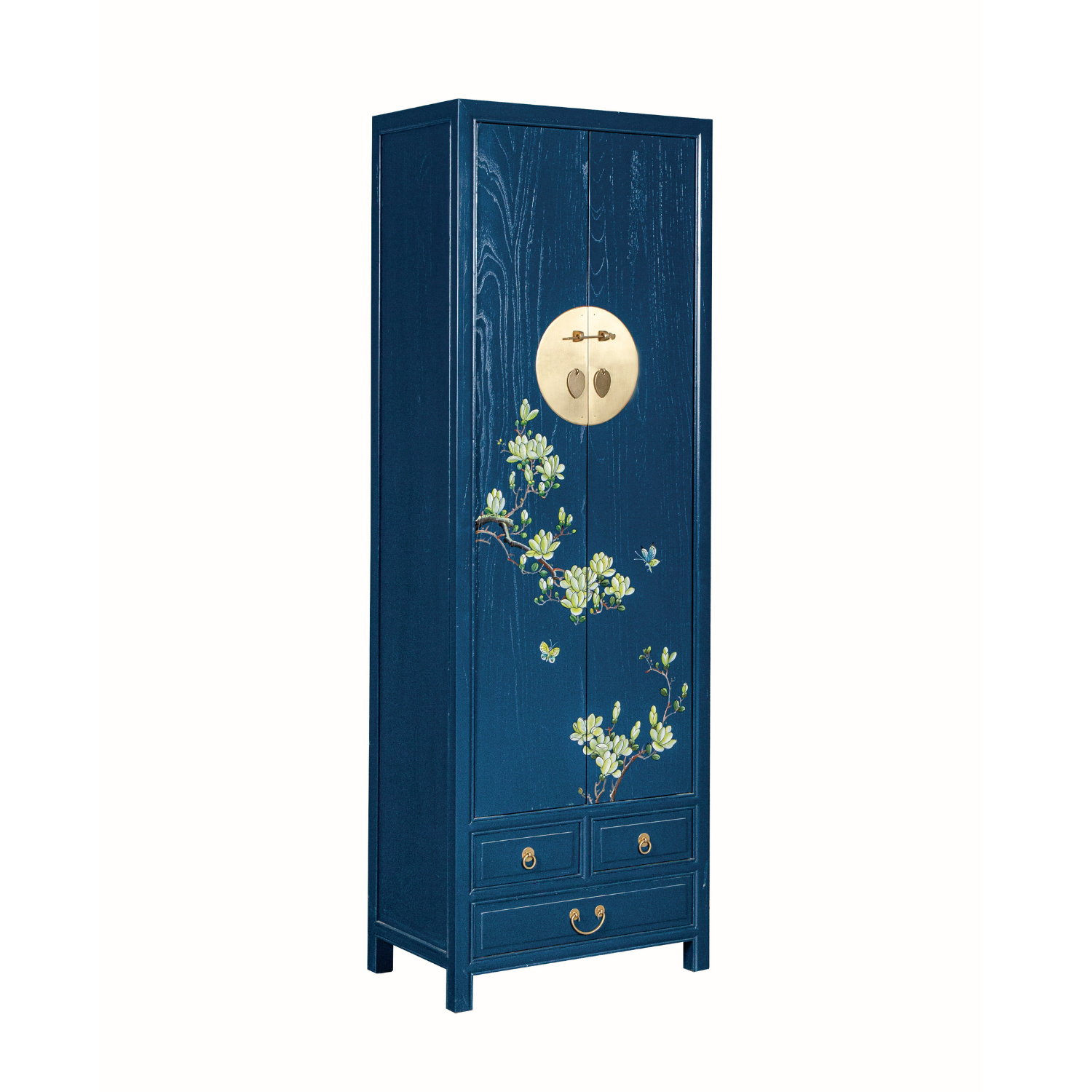 Inspired by the wedding cabinets from ancient China, this tall, narrow cabinet focuses on showcasing the natural wood grain of the elm, its elegant construction and the hand painted motifs that the era was famed for. Featuring four spacious shelves and three bottom drawers, this cabinet is ideal for storing medium height items such as vases and homeware items, or serving as additional closet space!