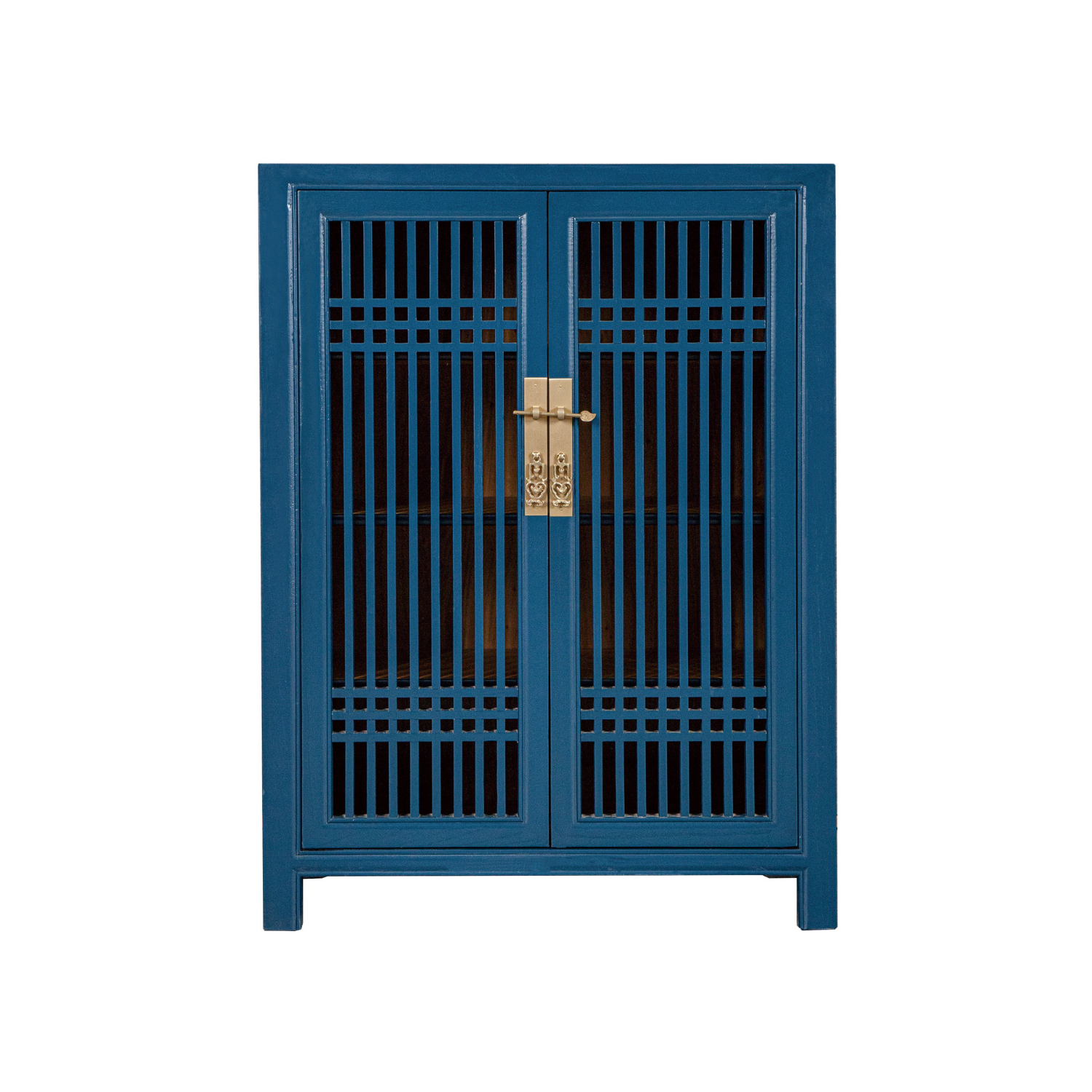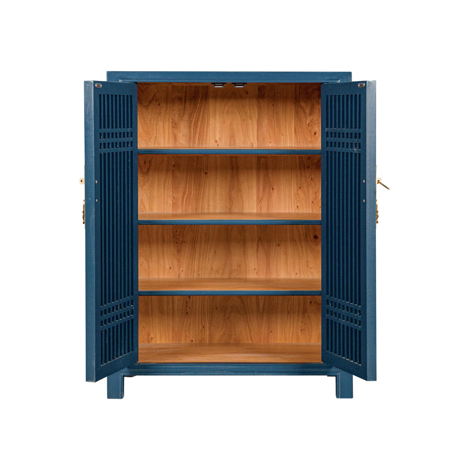 In the times of old, the Chinese favoured this lattice design for its closed yet open concept – contents would be shielded from view yet would be open enough to let air flow freely. Inspired from those times, the lattice structure is still favourably viewed in today’s architecture, as it is with this expansive shoe cabinet. Dressed in dark blue with brass fittings, this cabinet is ideal to keep your shoes ventilated, yet hidden.