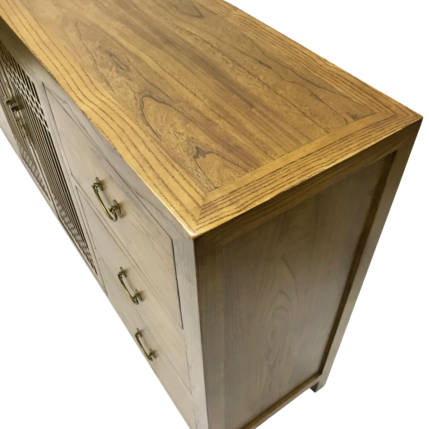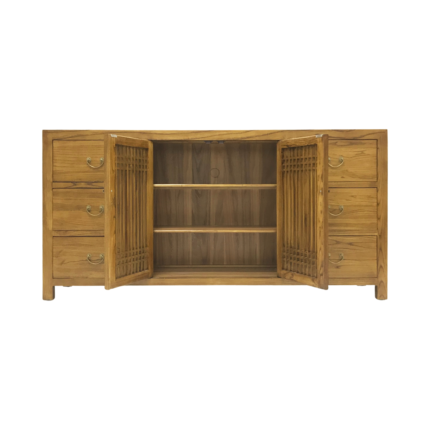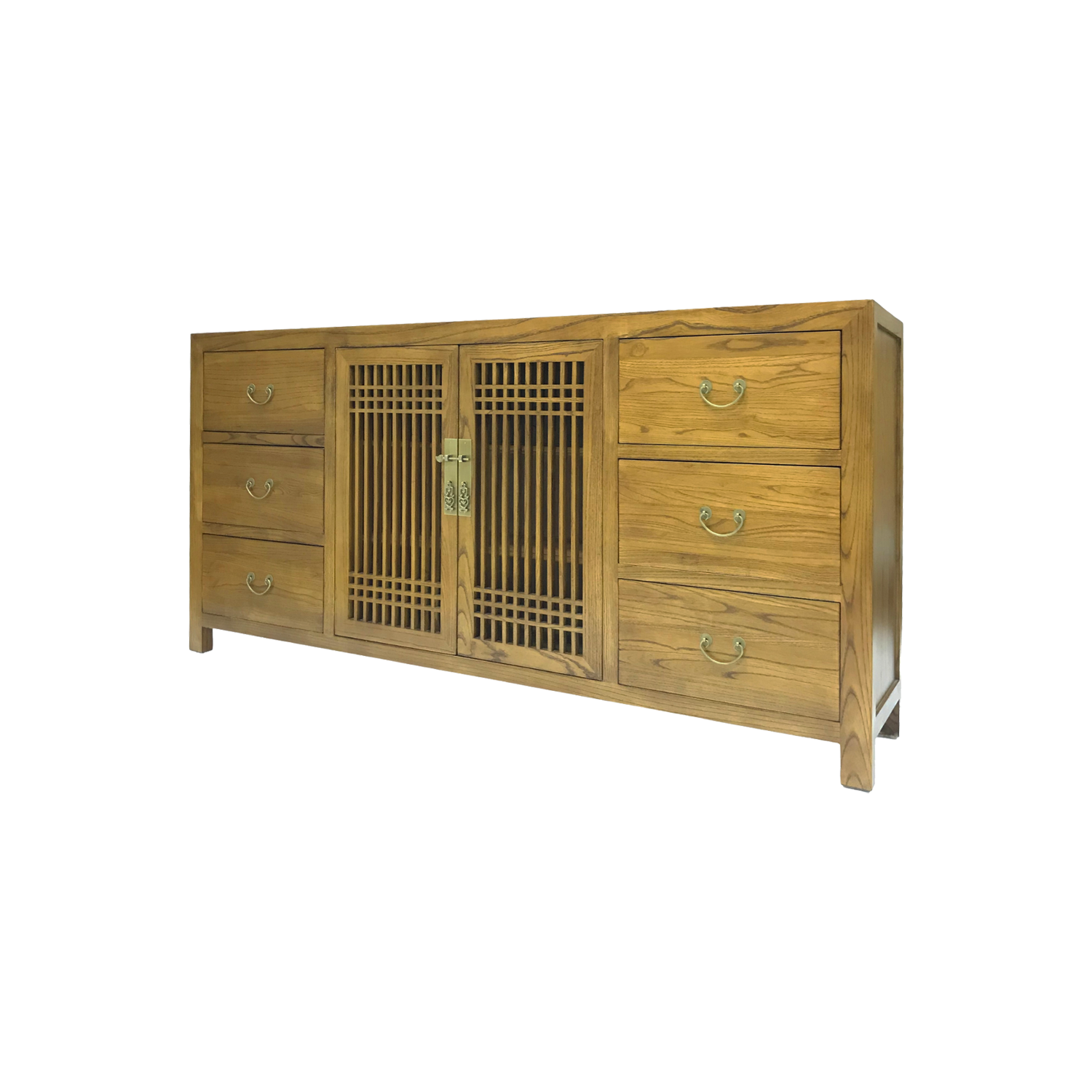 In a classic twist of east meets west, this light brown side piece is made of sturdy elm wood in the time-honoured lattice design. With a whopping number of six drawers and a spacious middle compartment accented by two outward swinging doors and a cable hole, this is ideal not only as a perch for a bedroom television, but also as a station by the hallway for excess storage space.