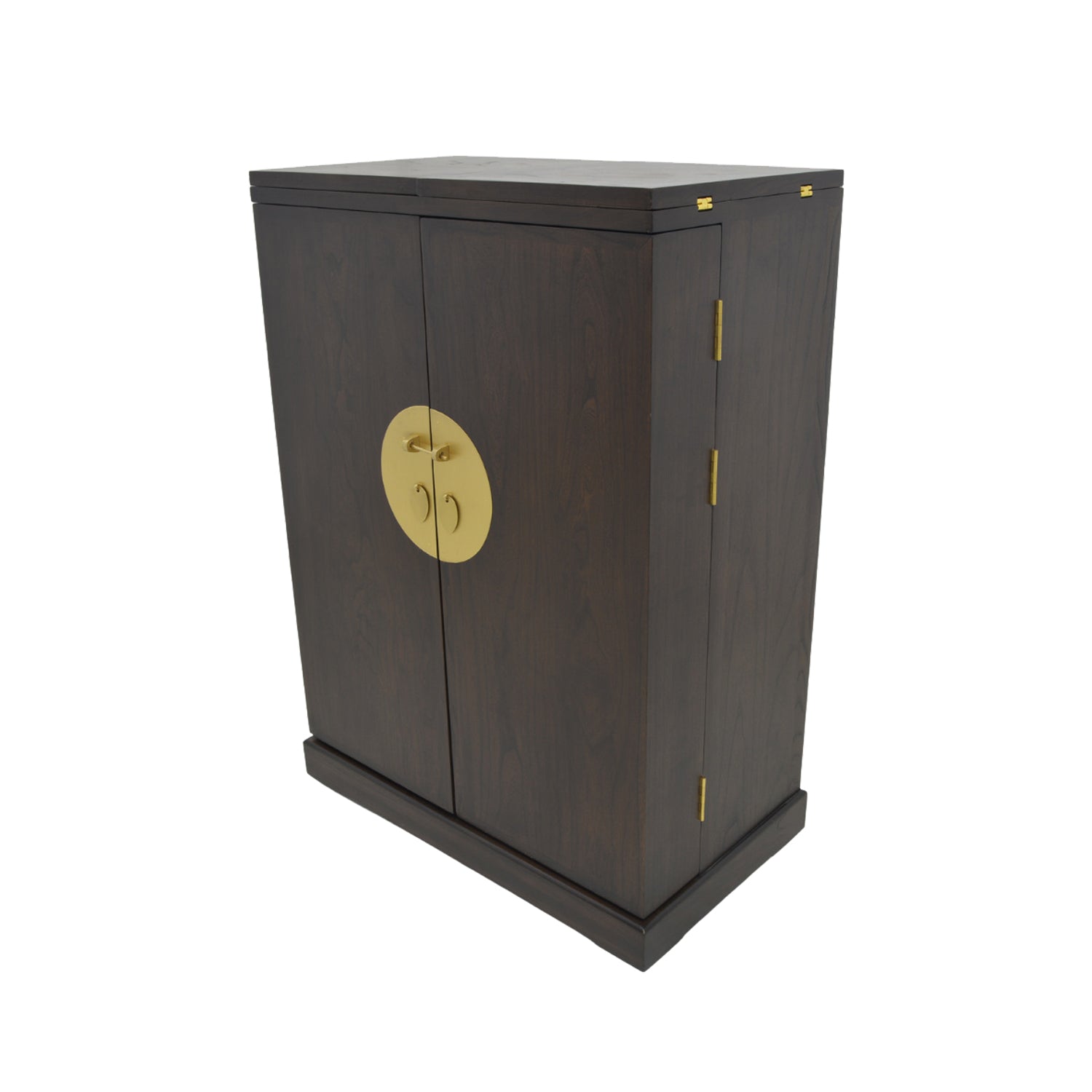 Deceptively simple on the outside, this wine bar is nothing if not functional. Opening to reveal a series of byzantine compartments ideal to store various sizes of bottles and other wine paraphernalia, this wine cabinet is sure to impress a dinner party when you do a grand reveal for post-dinner drinks! With brass hinges and face plates, it brings across a stunning contrast when paired with dark wood.