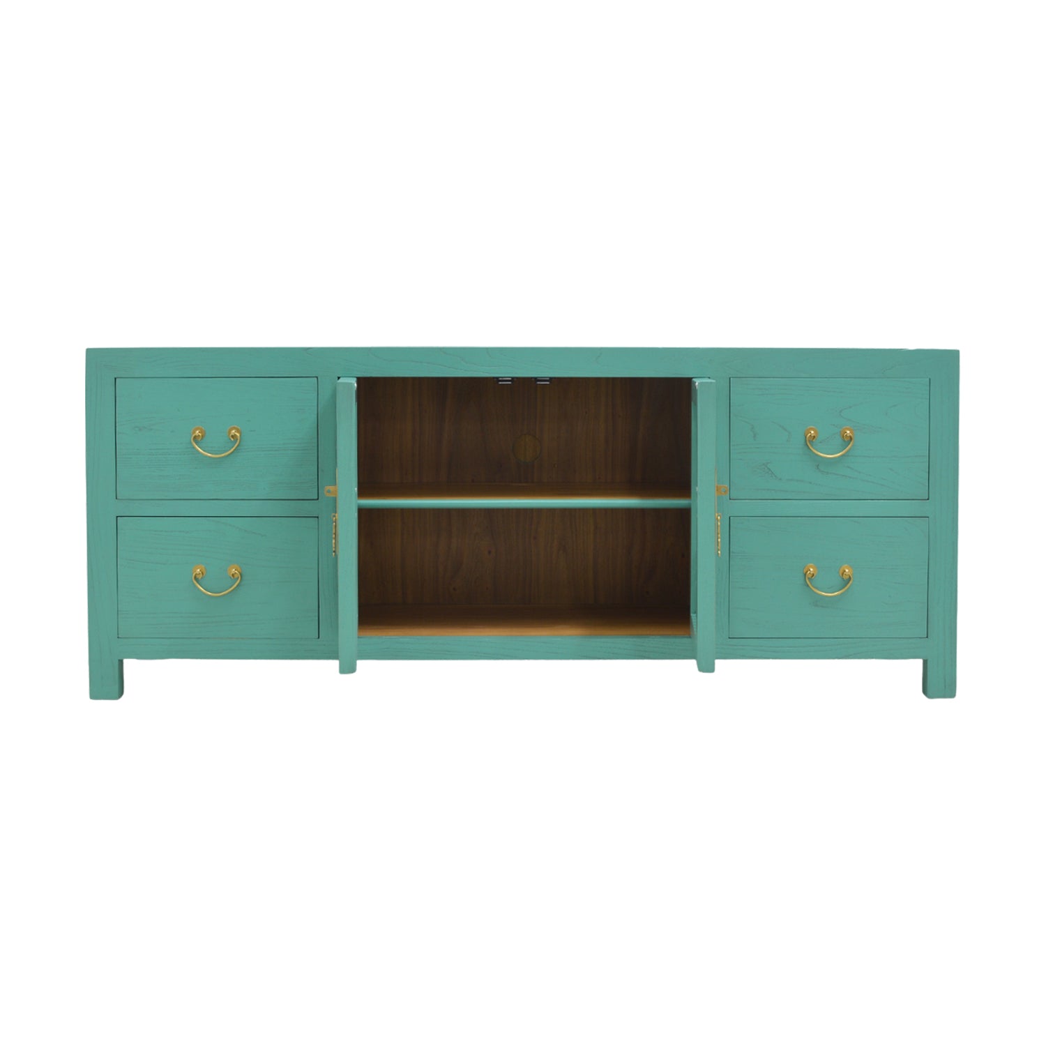 A fusion of rustic and chinoiserie styles, this TV console in a light wood makes use of the ancient Chinese method of layering slim pieces of wood upon each other to create a lattice style, which promotes circulation while keeping the environment cool and dark. Ideal for storing your DVDs and console paraphernalia, this long console is ideal for both the bedroom and lounge.