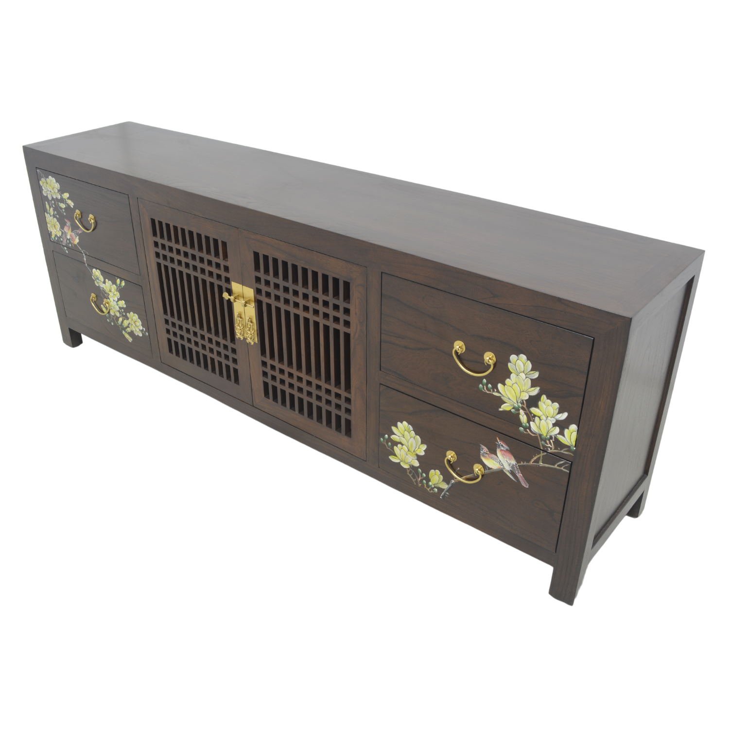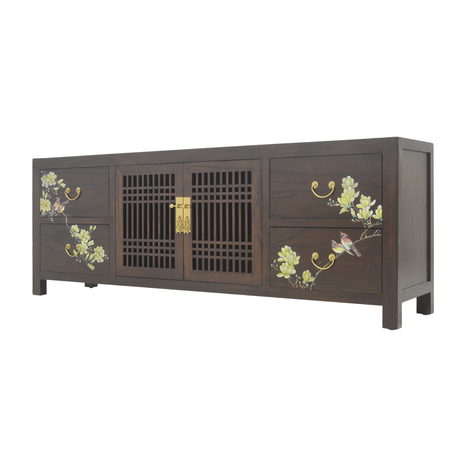 TV CONSOLE LATTICE W/ FLEUR 1.8M DARK WOOD