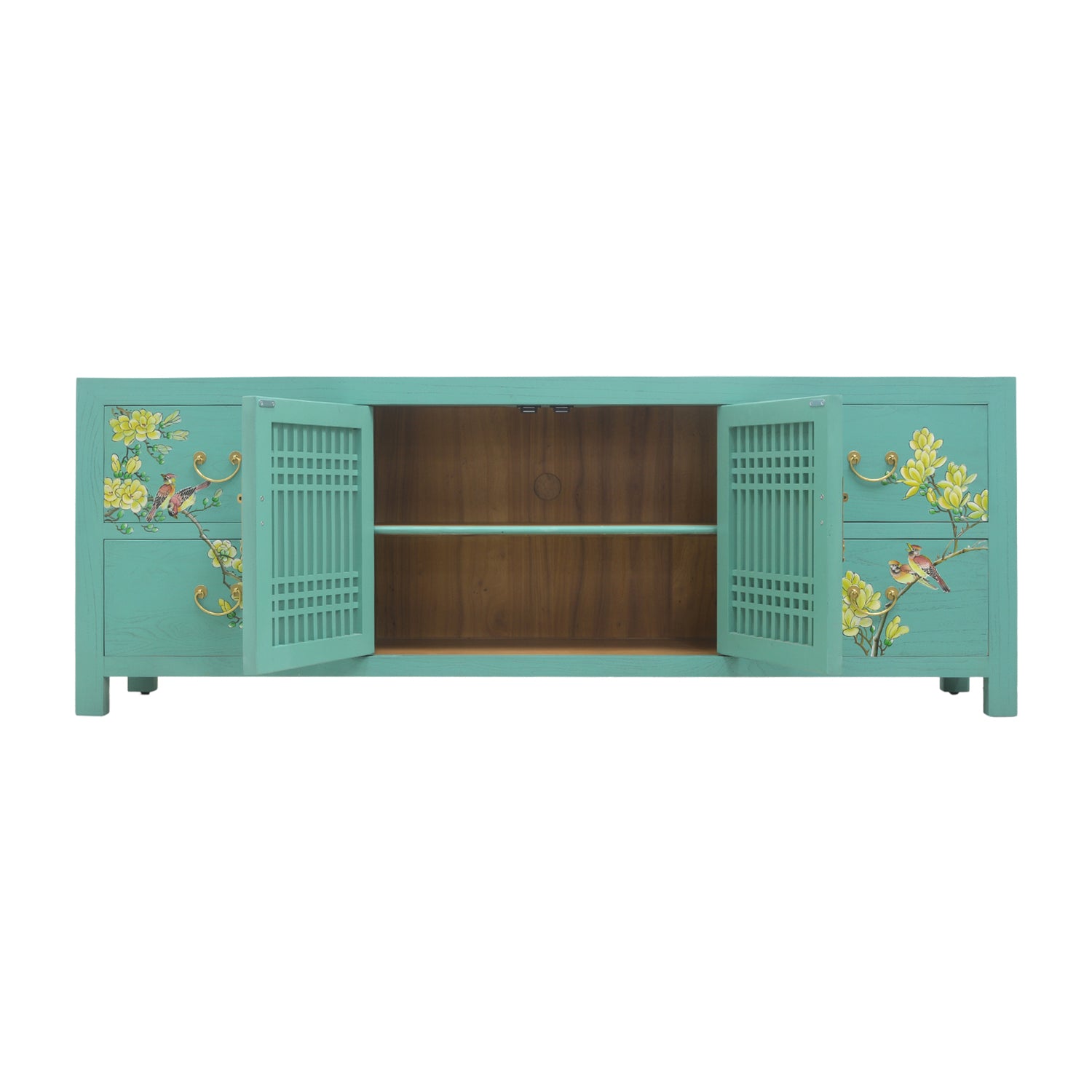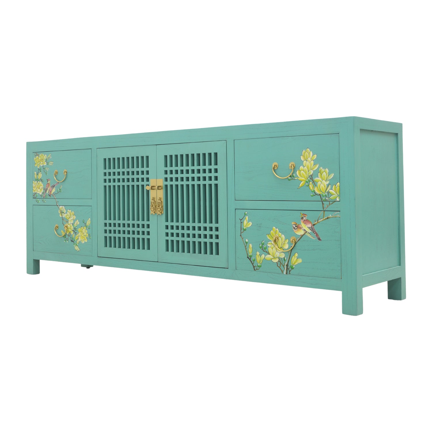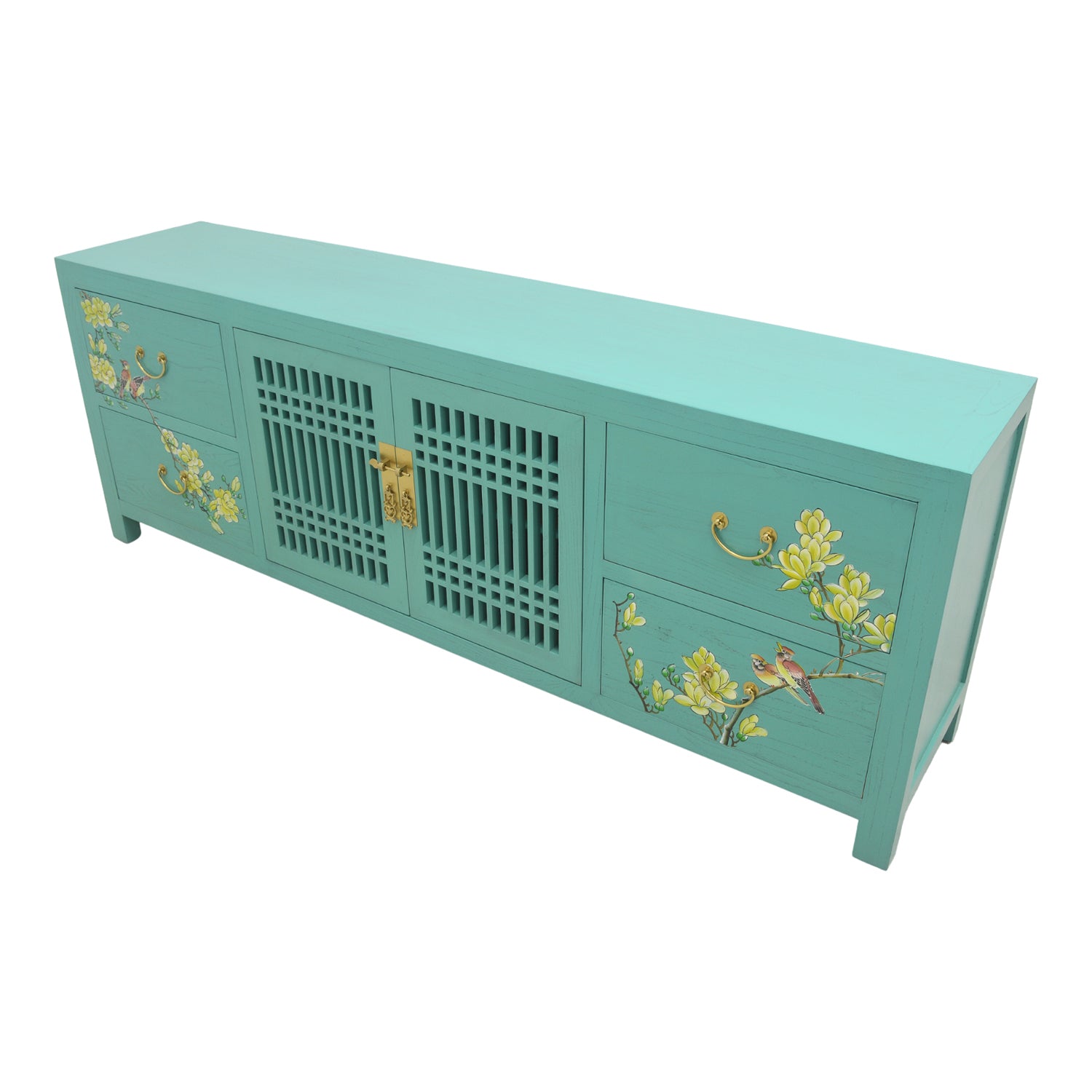 TV CONSOLE LATTICE W/ FLEUR 1.8M TURQUOISE WASH