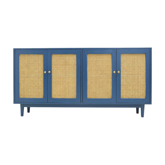 SIDEBOARD RATTAN HEX 4DR BLUE WASH