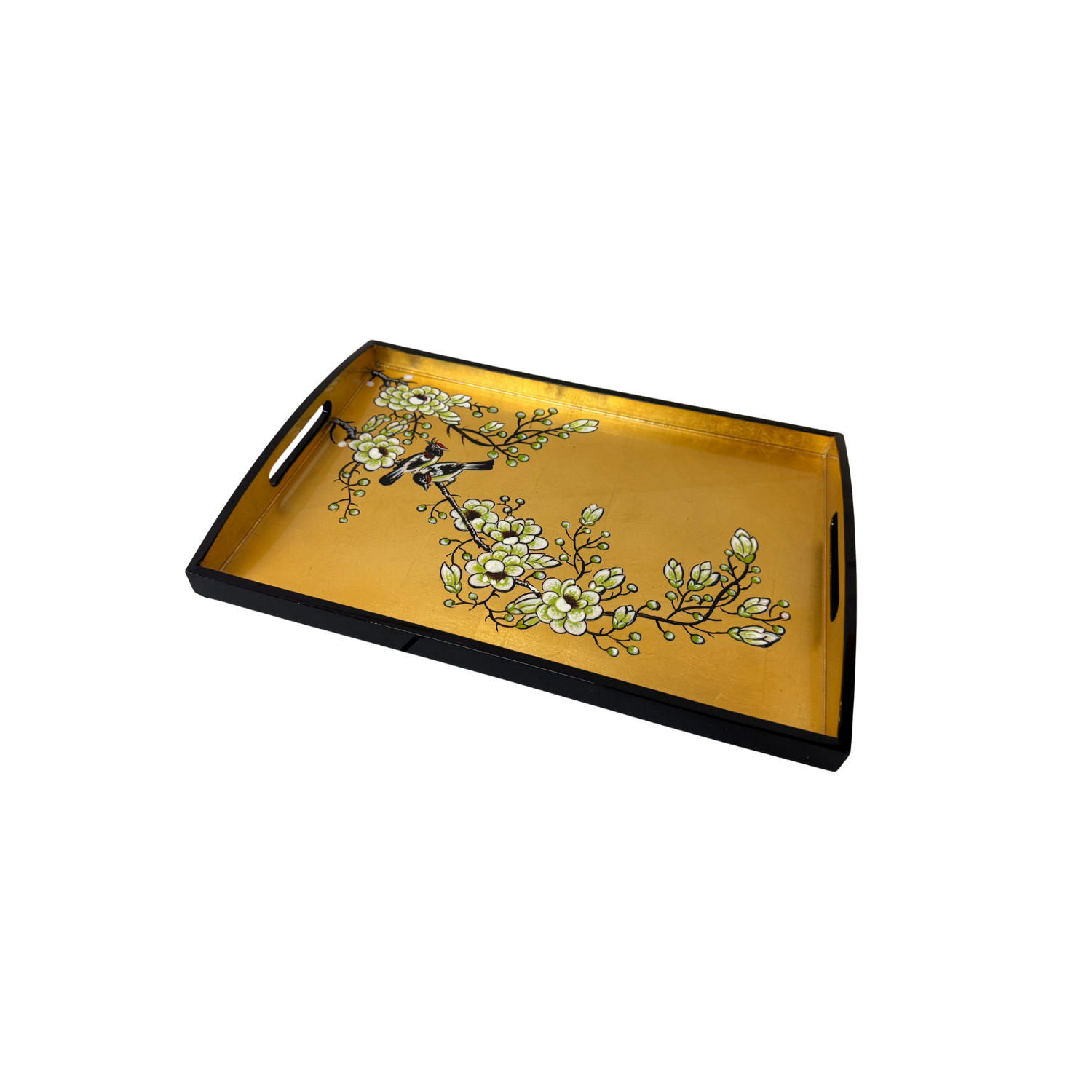 LACQUER RECT TRAY FLEUR GOLD (S)