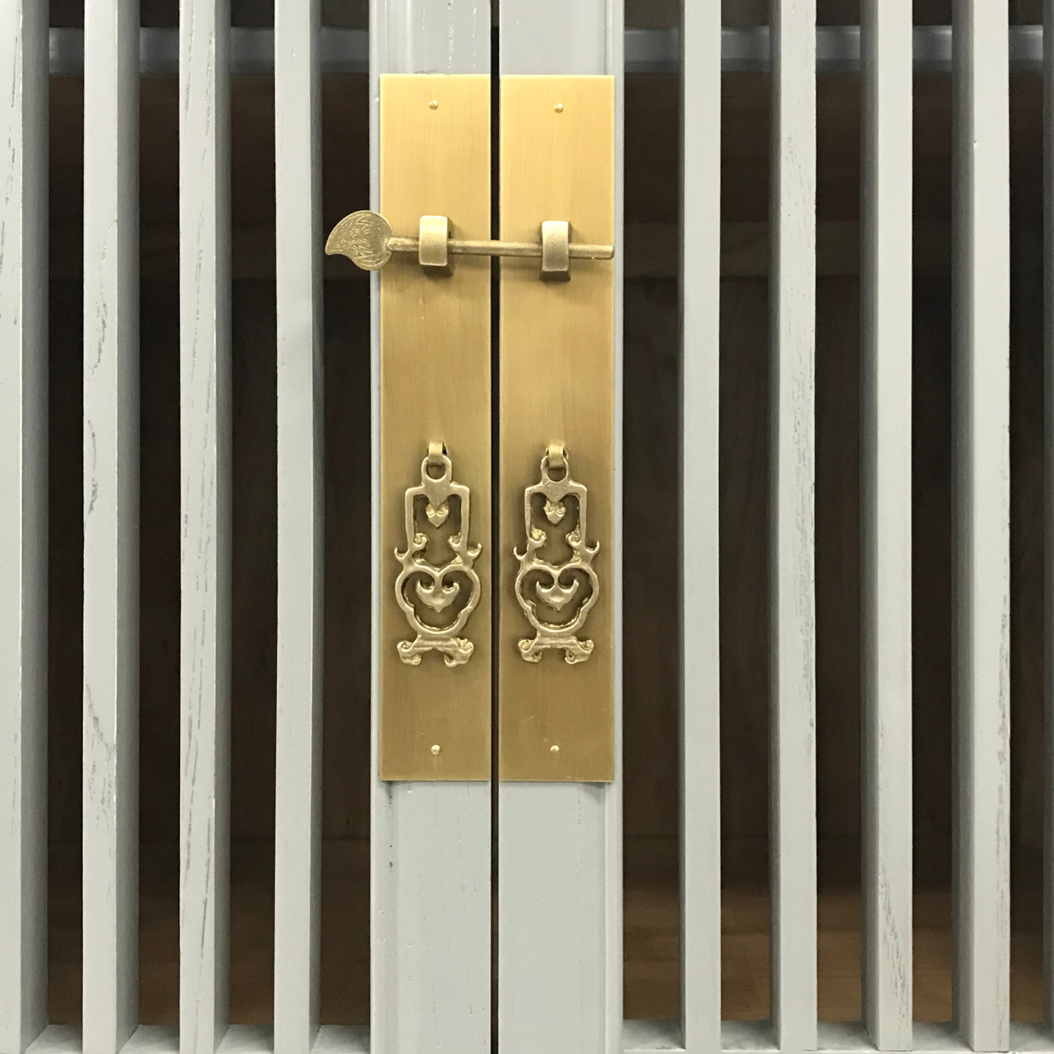 Standing at almost two meters, this tall structure is both a statement as well as an expansive storage space. This design borrows from the Chinese lattice, where it was popular to keep things ventilated, yet hidden from view.
