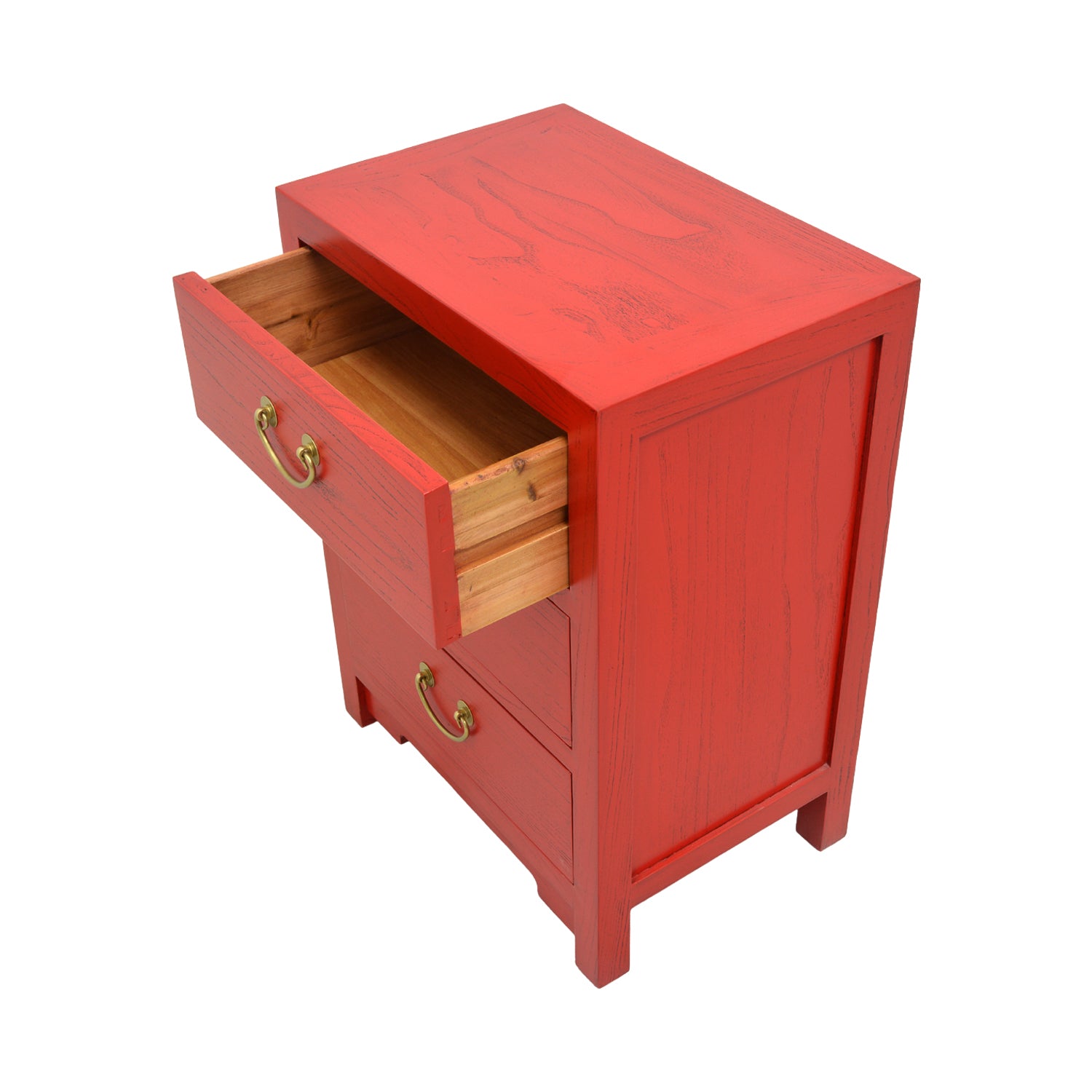 With swinging brass handles and natural elm wood finish, this cherry red piece is fluidly minimalistic yet understated. Ideally situated in the bedroom as bedside storage, this versatile piece can also be used in the living room to complement your sofas.