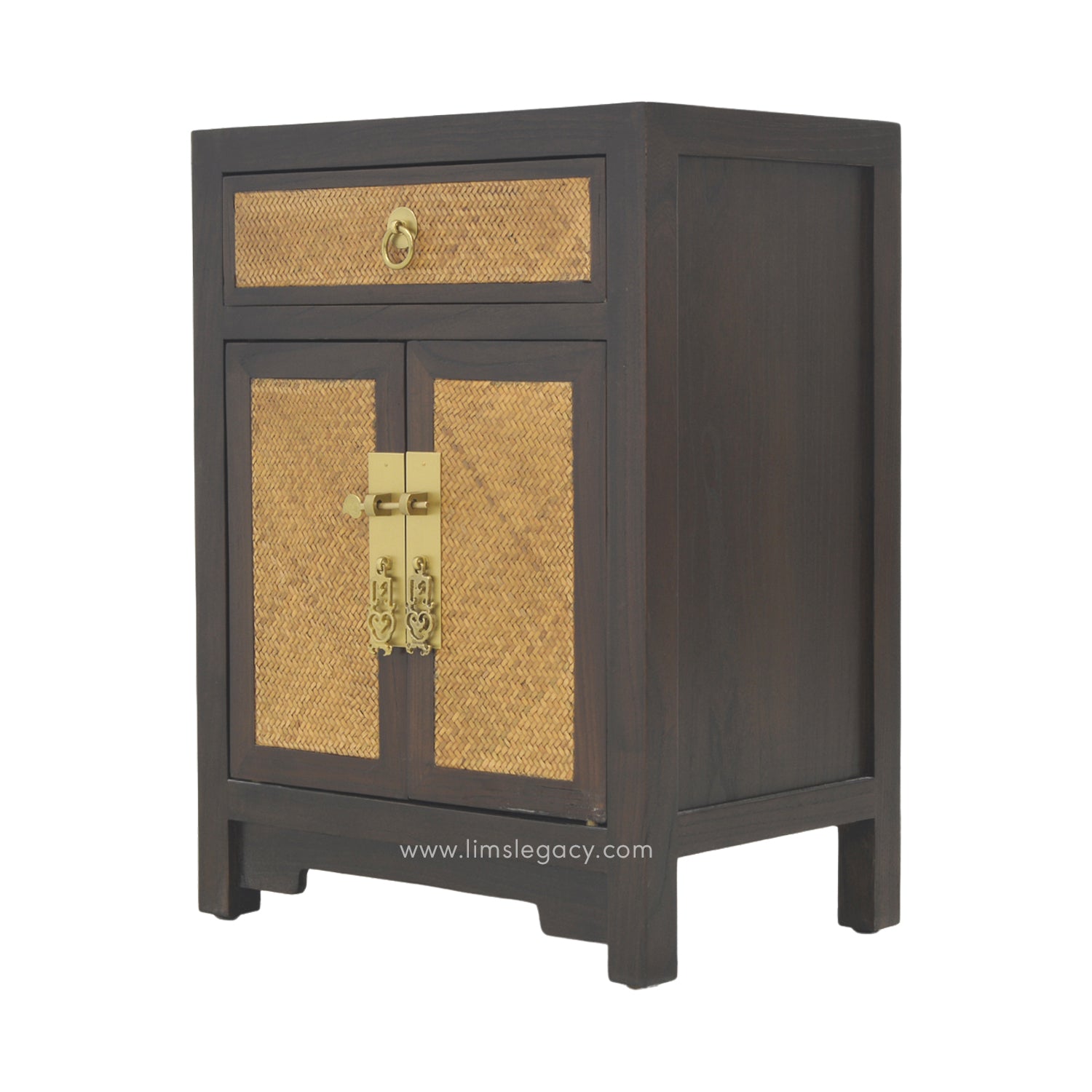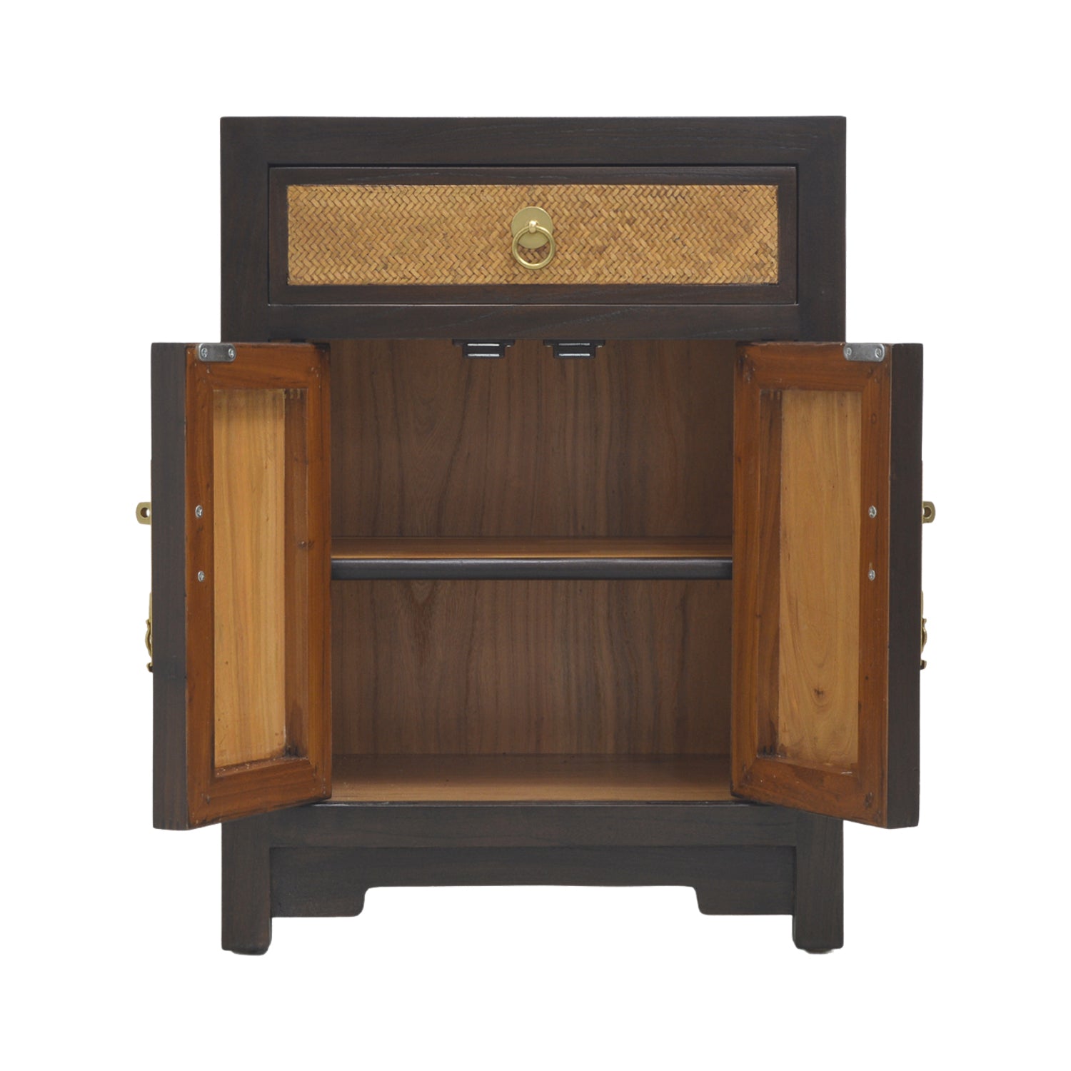 CABINET RATTAN 1DW2DR DARK WOOD MQZ-302
