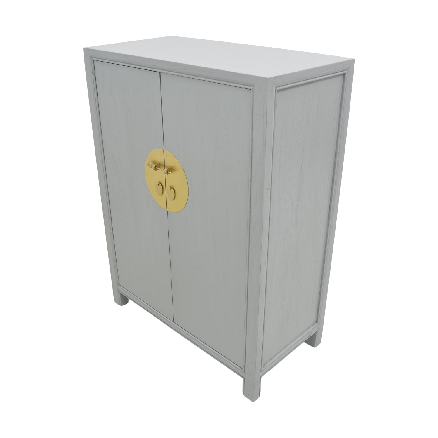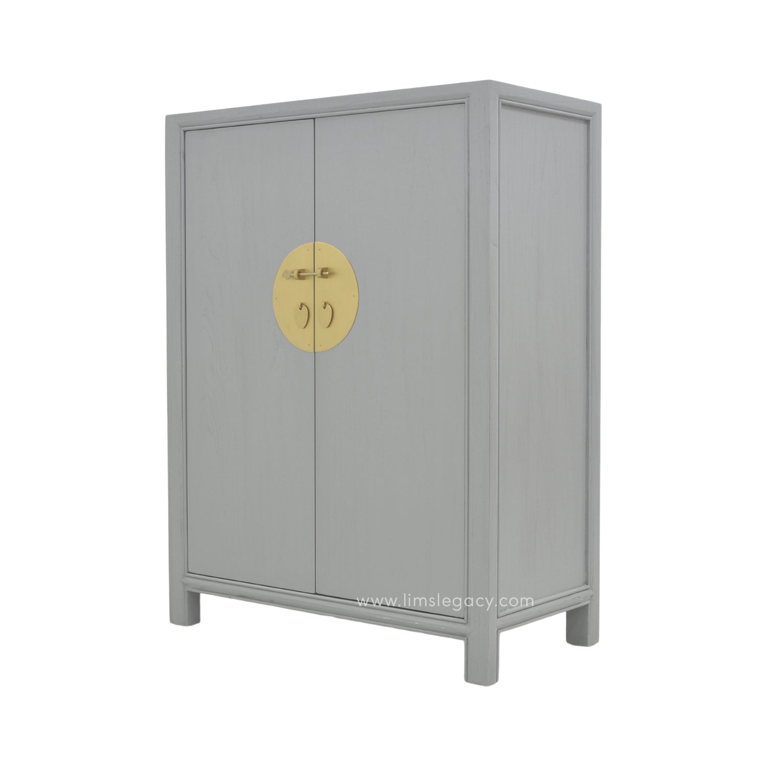 Fluidly minimalistic, this oriental shoe cabinet mixes the chinoiserie with the modern by featuring a traditional design in a trendy slate grey. With clean, flowing lines and just a simple brass face plate to indicate its oriental influences, this understated shoe cabinet blends into any living space with effortless ease. Use it for its intended purpose or get creative; the four shelves are perfect for storing rarely used china or linen!